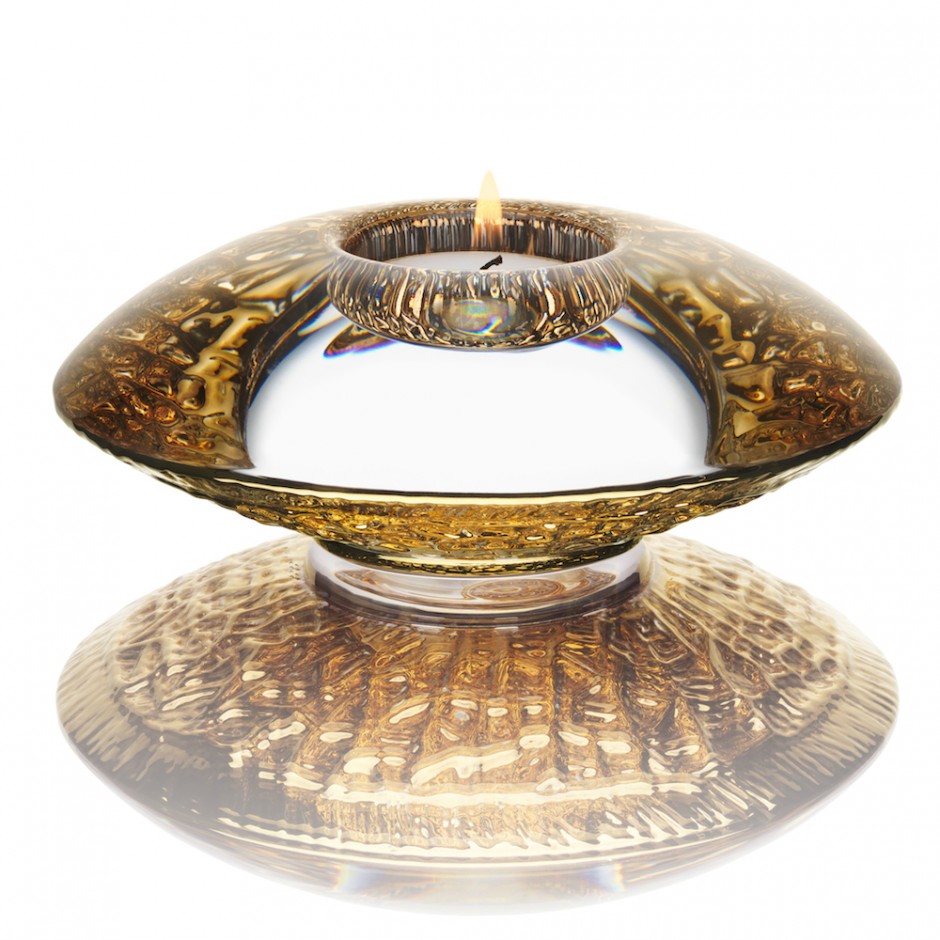 The original Discus was designed expressly to herald the World Athletics Championships in 1995. The popular Discus votive is now accompanied by the new Discus Gold. Painted underneath in gold the votive gives a fantastic shimmer and soft light to its surroundings. Discus is a suitable as Holiday Decoration as well as a statement in the trend sensitive home.